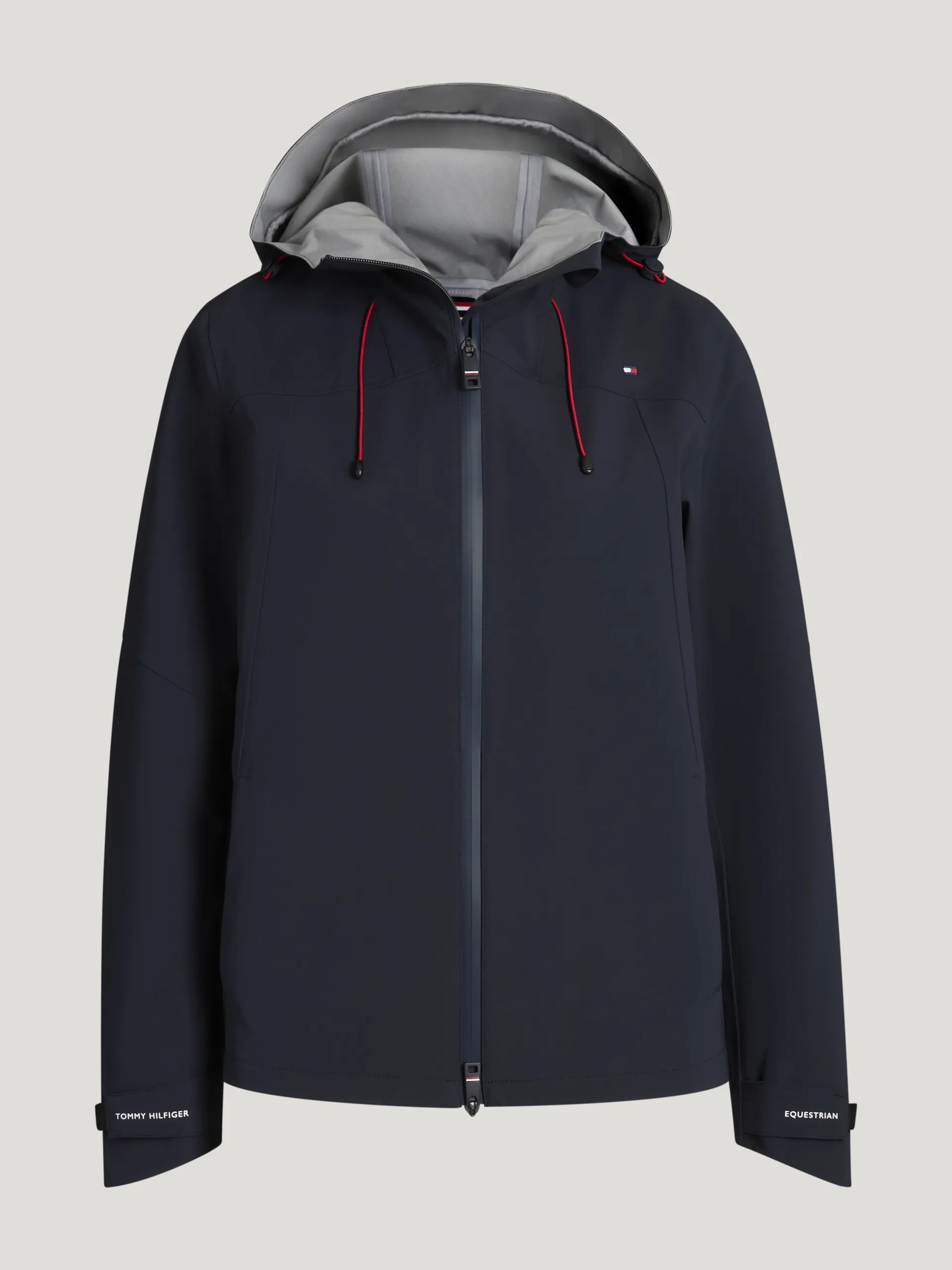 Stay dry and protected in all weather with the Tommy Hilfiger Upland Airbag Compatible Rain Jacket in Desert Sky. From the SS26 collection, this waterproof technical rain jacket is designed for performance, safety, and style. Airbag compatible with taped and sealed seams, it provides complete rain protection while keeping you comfortable with an air flap for breathability and ventilation. Practical features include zipper hand pockets, adjustable Velcro cuffs, and a hood with adjustable bungee cords. Finished with TH logo trim details, this jacket combines functionality and iconic Tommy Hilfiger style, perfect for riding, outdoor activities, or everyday wear in wet conditions.