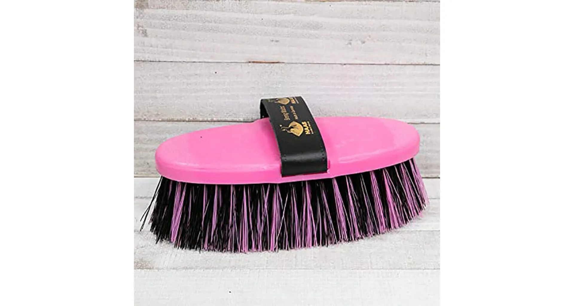 A versatile grooming brush with 5cm two-tone synthetic bristles and a leather handle. The long bristles effectively and gently remove dirt from the coat and are ideal for use all over the body.