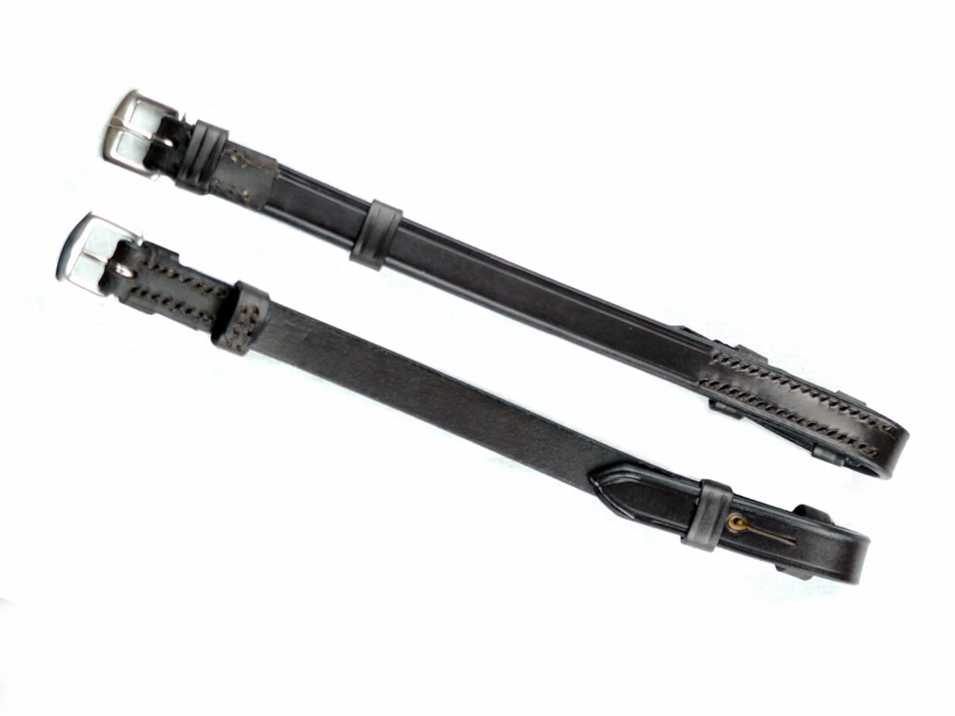 A quality leather, hand sewn pair of replacement cheek pieces from Ascot featuring stainless steel fittings.Sizing